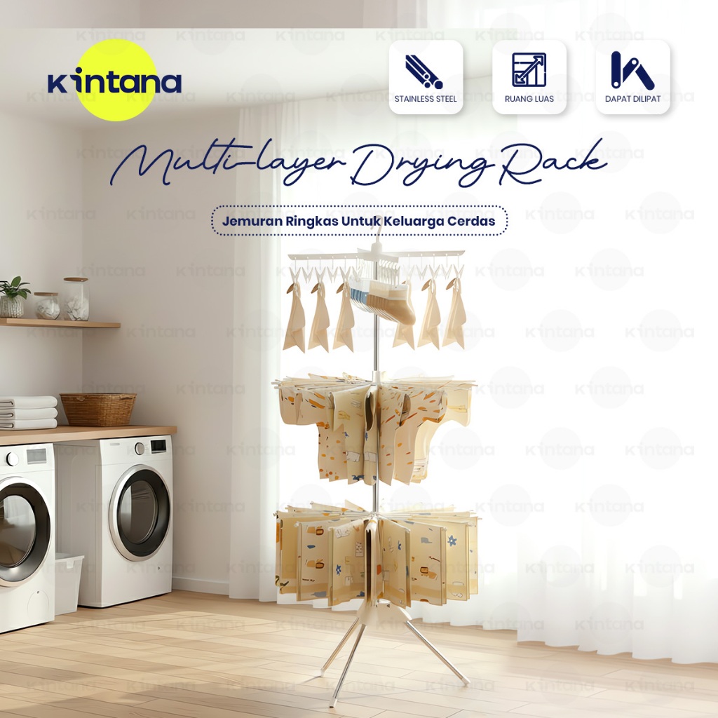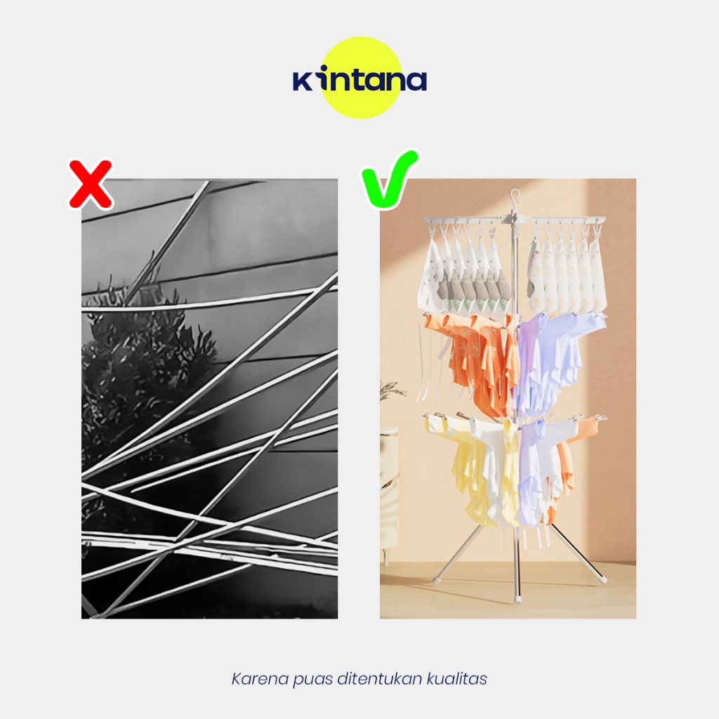 Kintana Rak Jemuran Serbaguna Jemuran 3 Tingkat Jemuran Menara Baju Kaos Kaki Kain Gantung