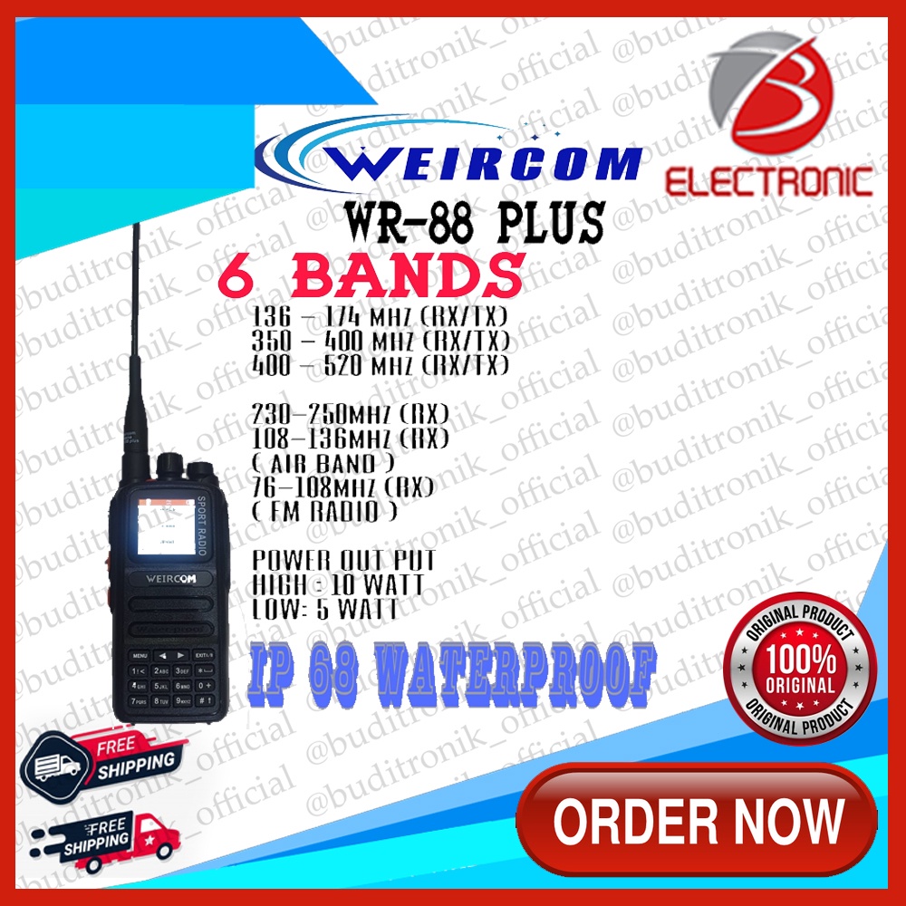 HT Weircom WR 88 Plu 6 Band New Function 10 Watt Waterproof / 3 Display Type C Charger
