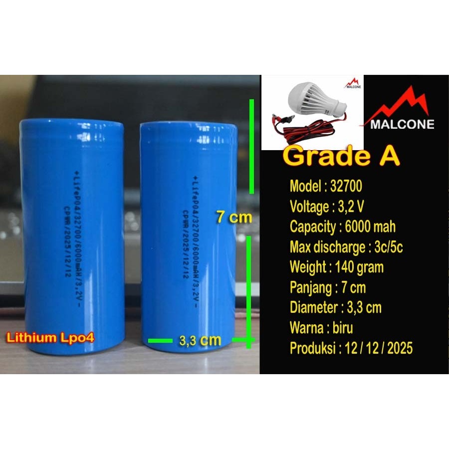 Baterai Lithium iron phosphate / Life4 3,2 volt 6000 mah 6 ah Grade A New Bonus Lampu Jepit 3W order kelipatan 4 pcs