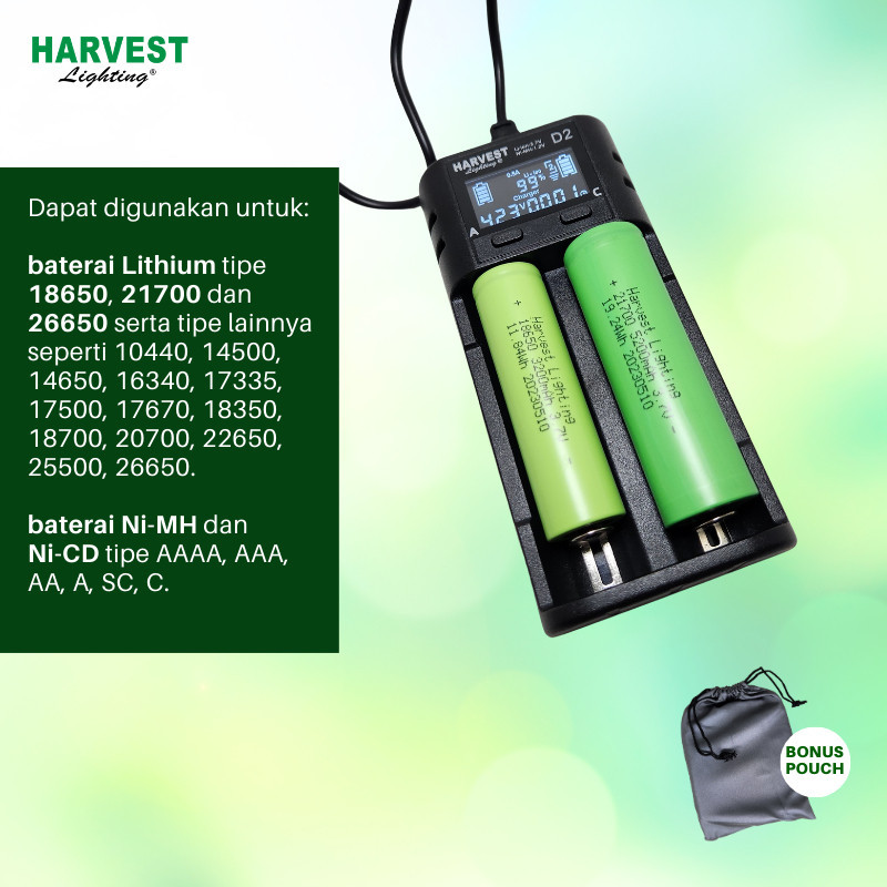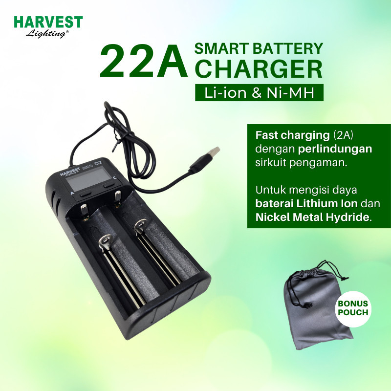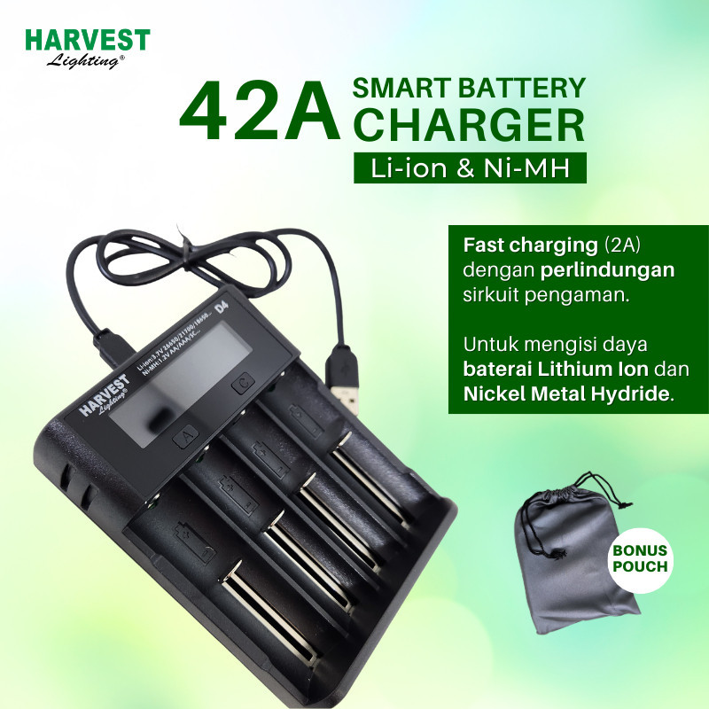 Harvest Lighting Smart Battery Charger Baterai Cas Fast Charging Lithium Ion 18650 21700 26650