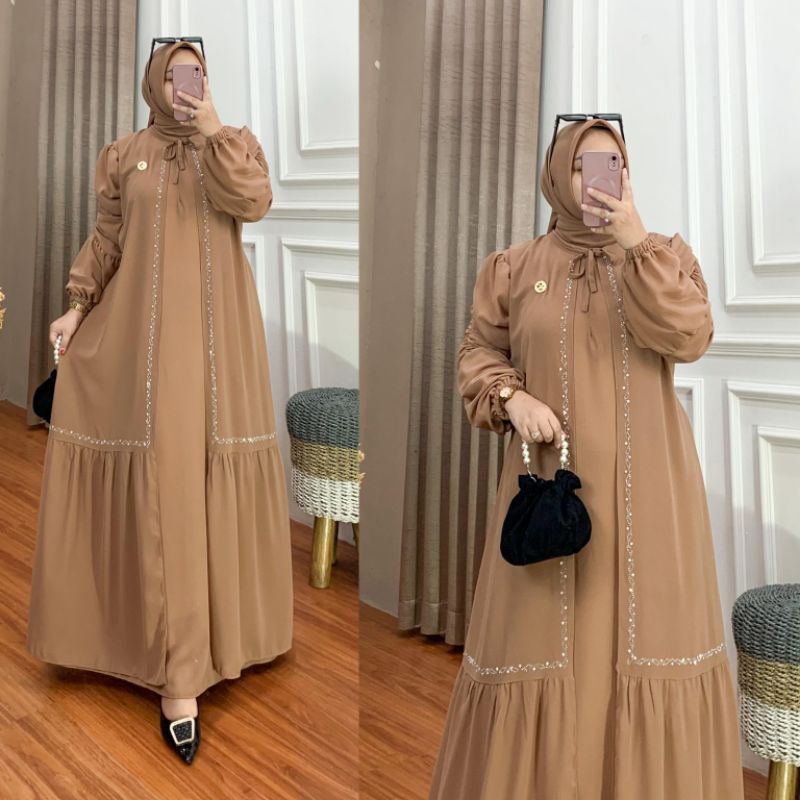 GAMIS RAYNA SWAROSKY MEWAH PESTA KONDANGAN CERUTY PUTIH SET HIJAB