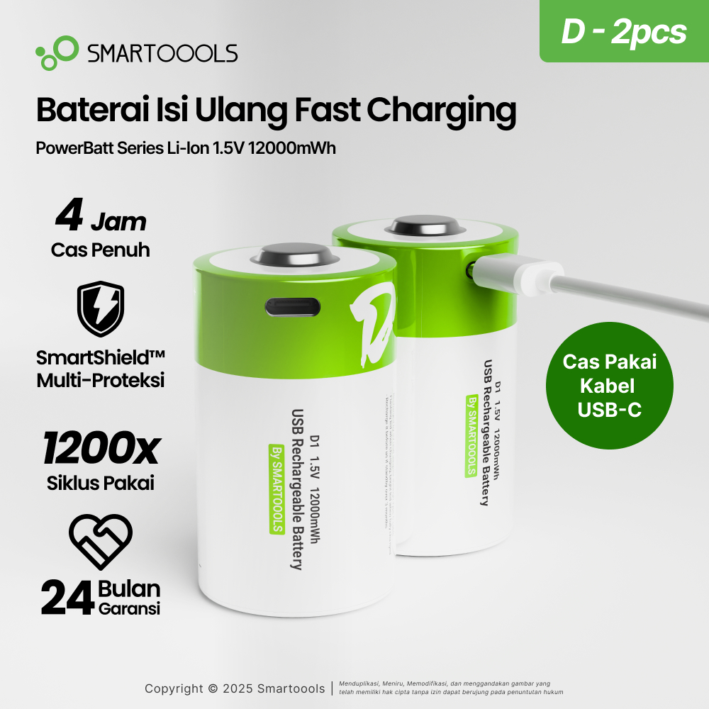 Baterai Cas Isi Ulang Smartoools werBatt D 1.5V Type-C USB Rechargeable Li-Ion Battery Charge