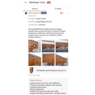 Tirai Bambu Vernis & Pliture 2x2 Meter Tahan Air