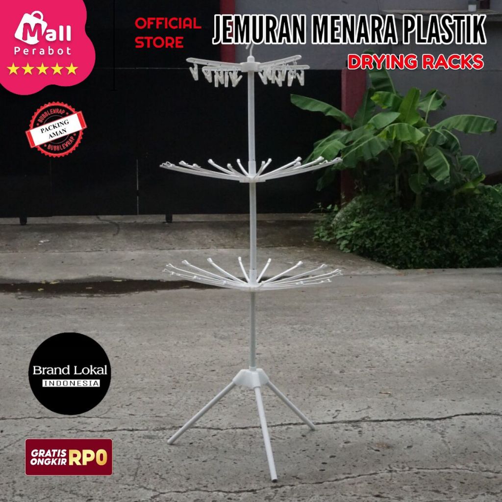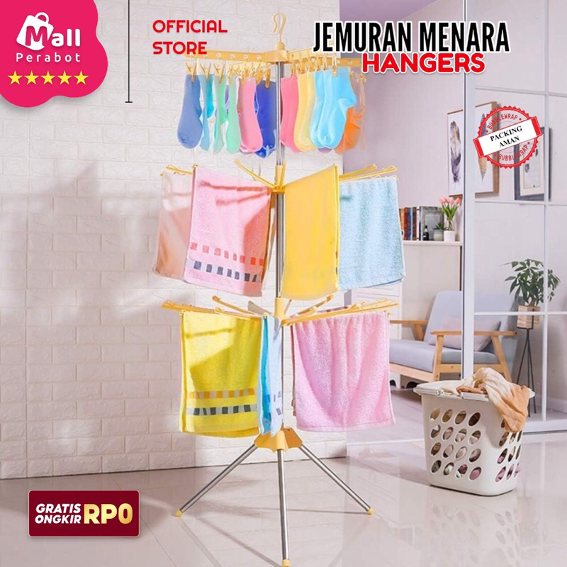 Mall Perabot | Jemuran Menara | Hanger Pengering Baju Lipat Model Tiang 3 Susun | Gantungan Tower Cucian Bayi Jepitan Pakaian