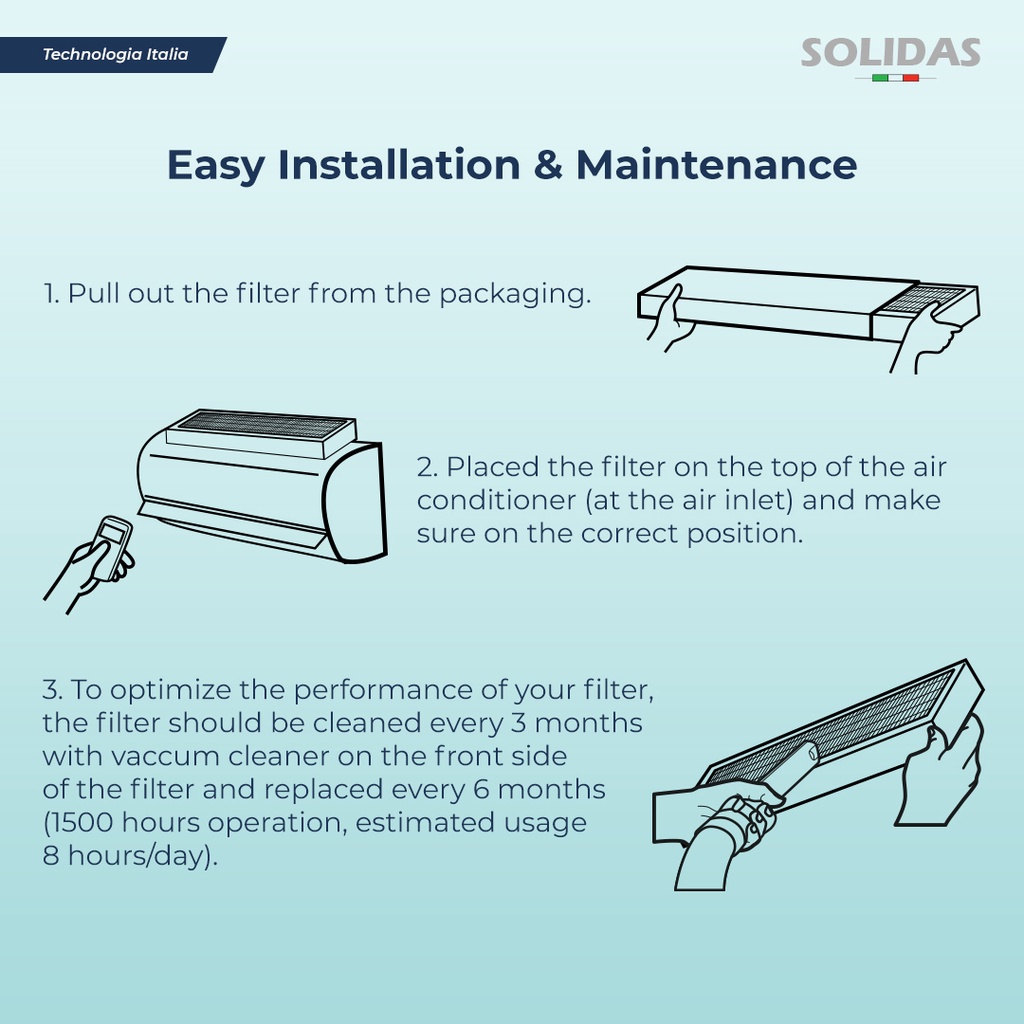 Solidas - Filter Purifier for Universal Air Conditioner 1-2 PK Filter AC