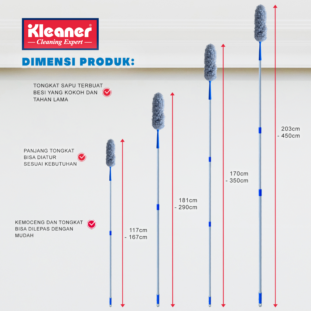 Kleaner Kemoceng Fleksibel Gagang Extend / Teleskopik Abu Abu