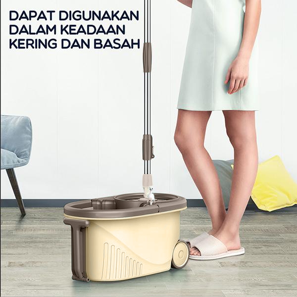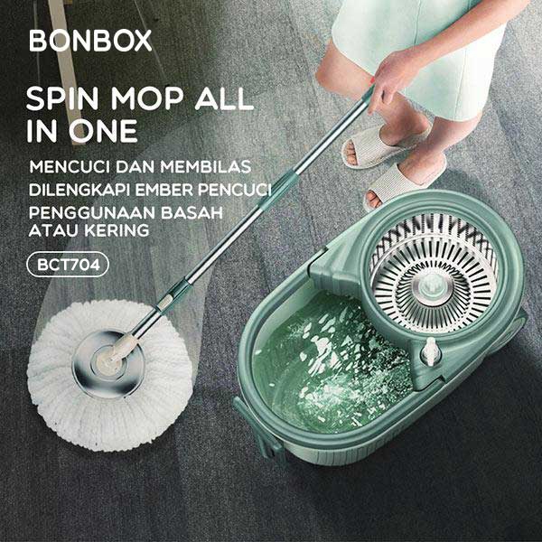 BONBOX Alat Pel Lantai Kain Fiber dengan Ember Spin Mop Mencuci dan Membilas Alat Pembersih Lantai BCT704