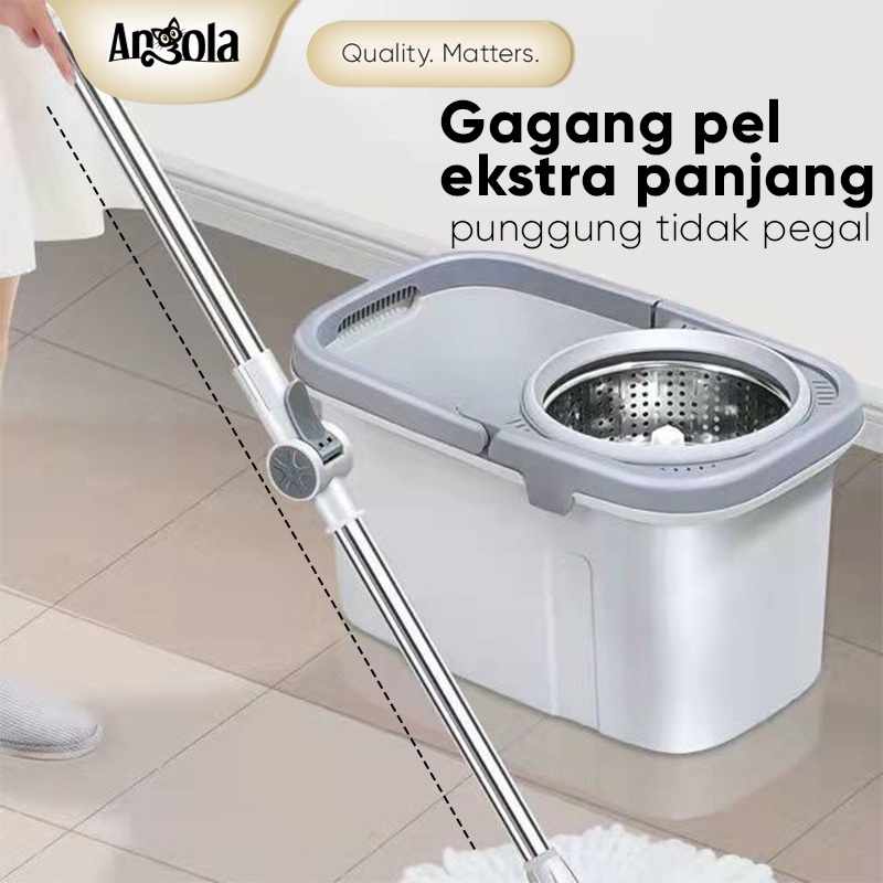 ANGOLA Spin Mop D04 Alat Pel Lantai Kain Pel Praktis Alat Pembersih Super Mop Otomatis