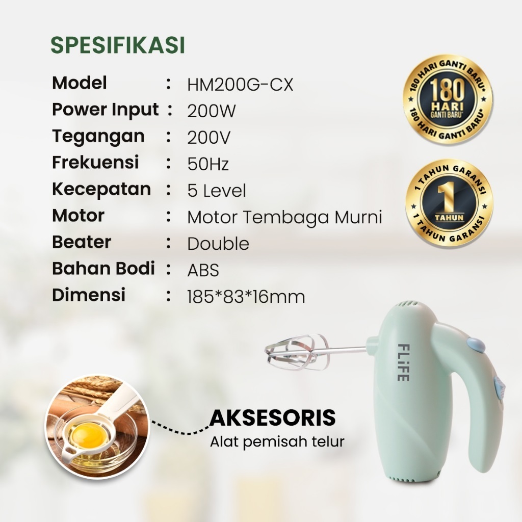Mixer Kue & Donat FLIFE Hand Mixer Tangan Alat Pengaduk Adonan Pengocok Telur Mini Modern Original Philips Cosmos Miyako