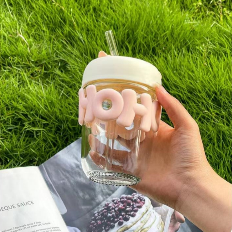 VOOVA Glass Tumblr Aesthetic Botol Minum Transparan Infused Water Botol Minum Sedotan Lipat Botol Minum Buah