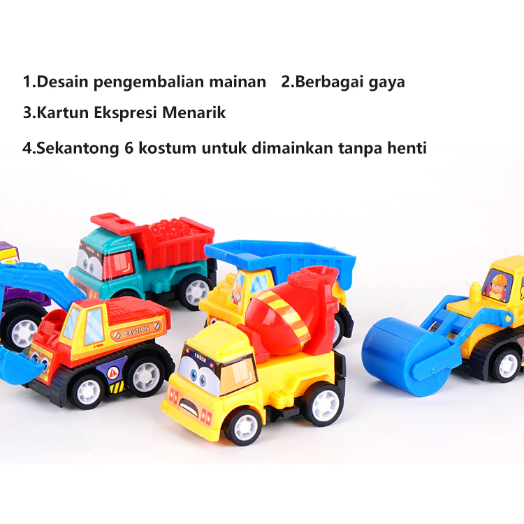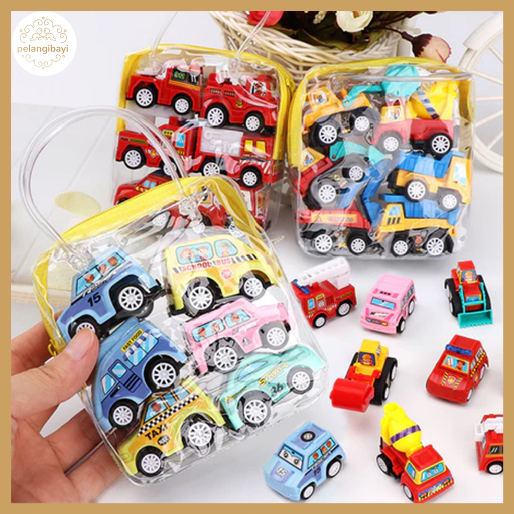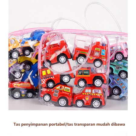 6PCS Mainan Anak-anak kelembaman Mobil Mini/Kendaraan Rekayasa/Fire Truck Hadiah Anak-anak Tas