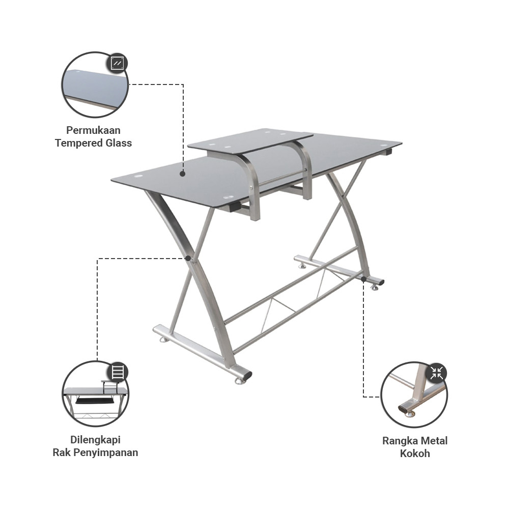 Informa Hazel Meja Kantor - Hitam Office Table Furnitur Kantor Belajar Serbaguna Meja Belajar Meja Rak Meja Monitor Kerja Perabot Kantor