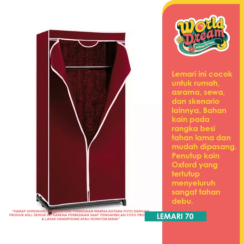 Worldream Lemari Pakaian Kain rtable Lemari Bongkar Pasang Lemari Kos Lemari Murah Meriah