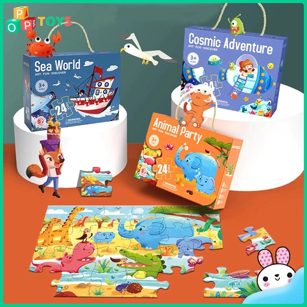 PTOYS 24PCS Teka-teki Anak Yang Tidak Beraturan Puzzle Adventure Floor Puzzle Set Hadiah Mainan Anak-anak