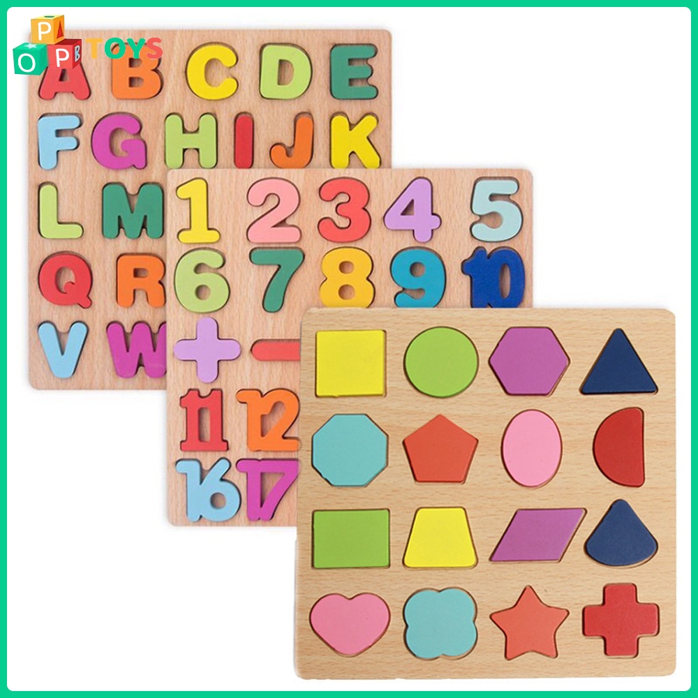 PTOYS 3D Mainan Anak Puzzle Kayu Geometry Huruf Angka Bentuk Mainan Edukasi Puzzle Anak