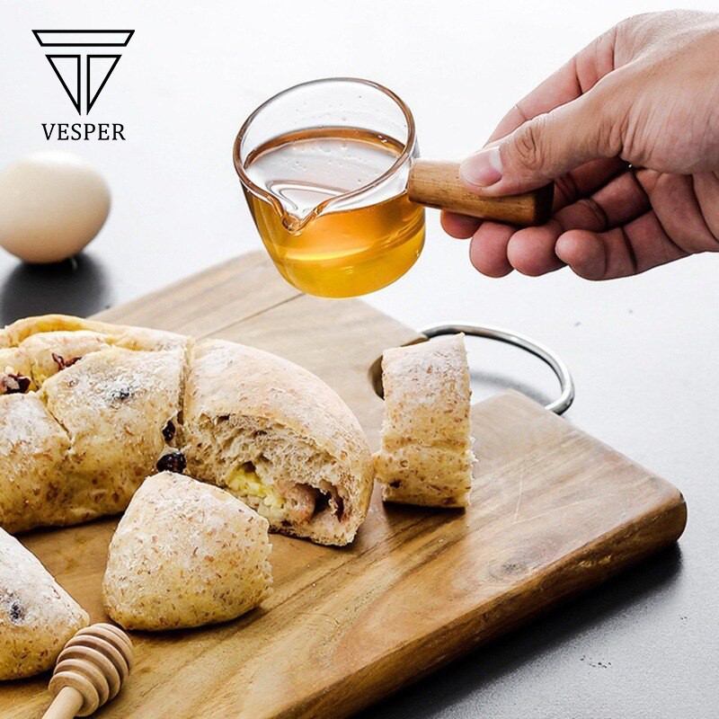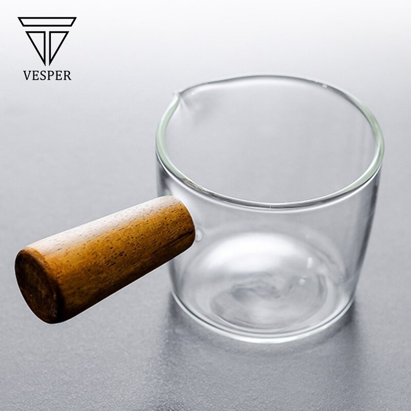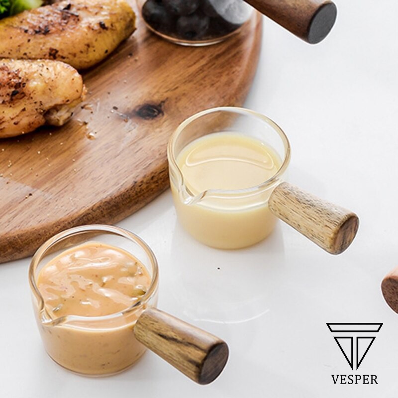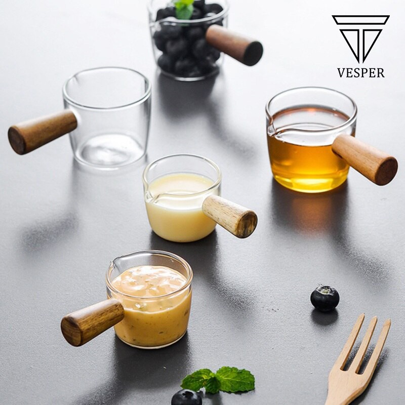 mini milk sugar glass t / gelas gula susu kaca borosilicate wooden handle 50ml dan 100ml