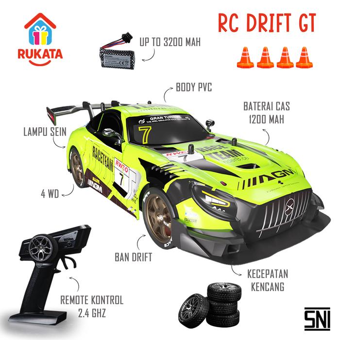 SNI FREE BATERAI REMOTE RC Racing Drift 1:14 High Speed 40km/jam Remote Control Cowok Hadiah Kado - Hitam