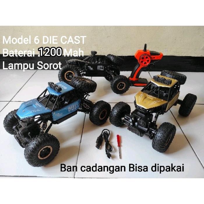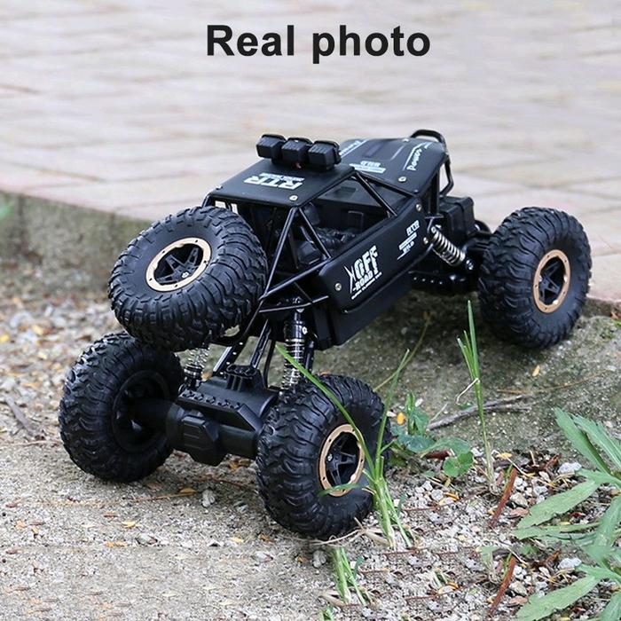 Rc crawler 4 Wd skala 1:14 body metal ada lampu mainan mobil remote anak laki - Hitam, 1 baterai 1200 Mah