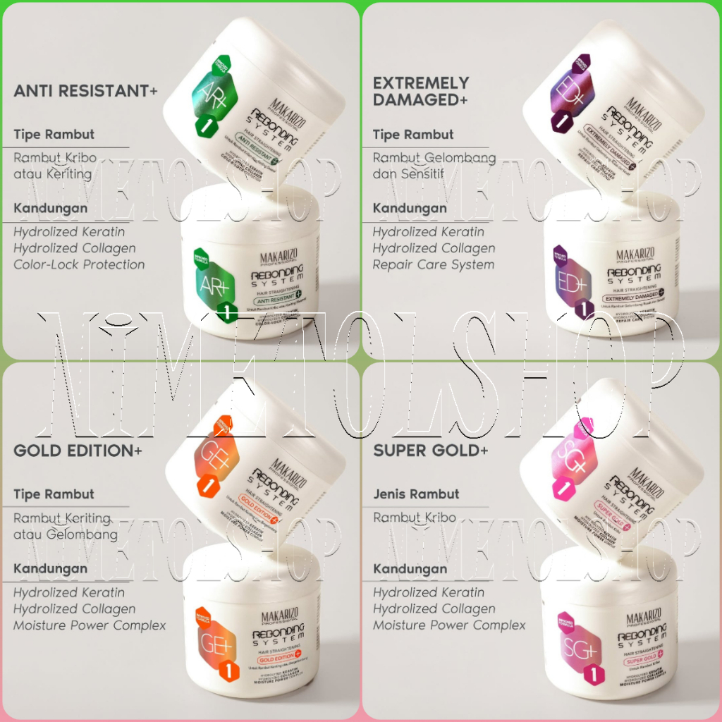 PAKET MAKARIZO Rebonding System STEP 1 500gr + STEP 2 500ml Obat Pelurus Rambut Smoothing Keratin
