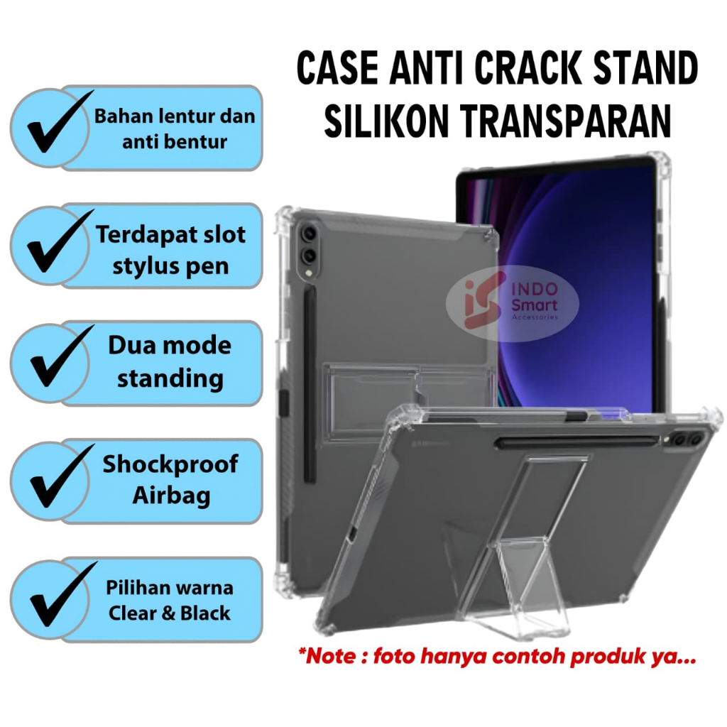 Case Samsung Tab S9 | Tab S7 | Tab S8 | Silikon Case Anti Crack Stand Casing Hardcase Clear Pen Stylus Anticrack Softcase Shockproof Silicone Standing
