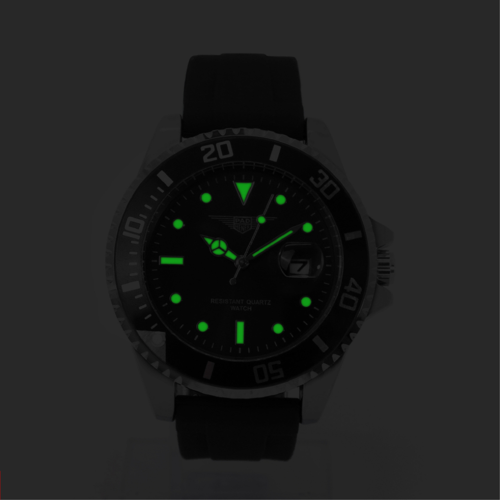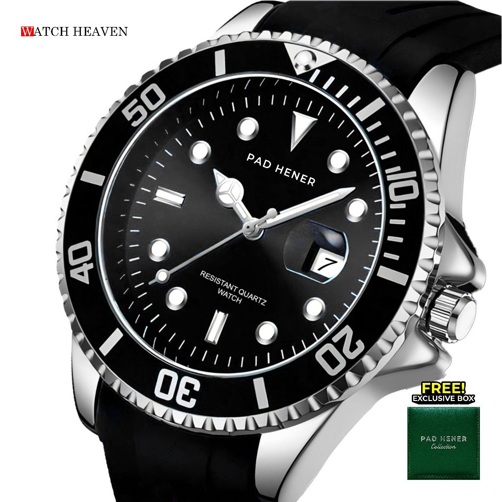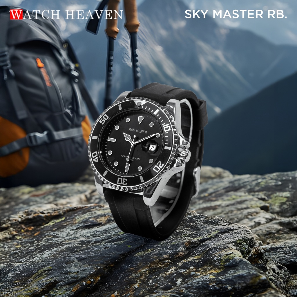 PAD HENER Sky Master Black Rubber Water Resistant Jam Tangan Pria Analog Original