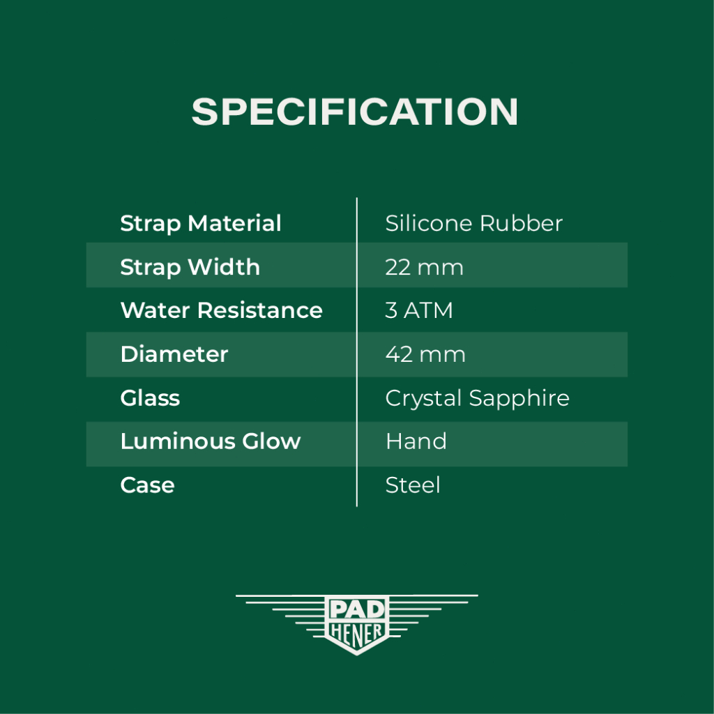 PAD HENER SKY MASTER Green Rubber Jam Tangan Unisex Analog Original Water Resistant Tanggal Aktif