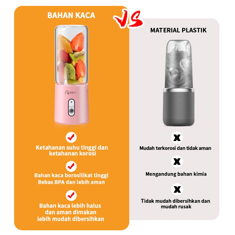 Abeni Blender Juicer rtable USB 400ML Mini Juicer Multifungsi 6 Mata Kaca menebal cangkir