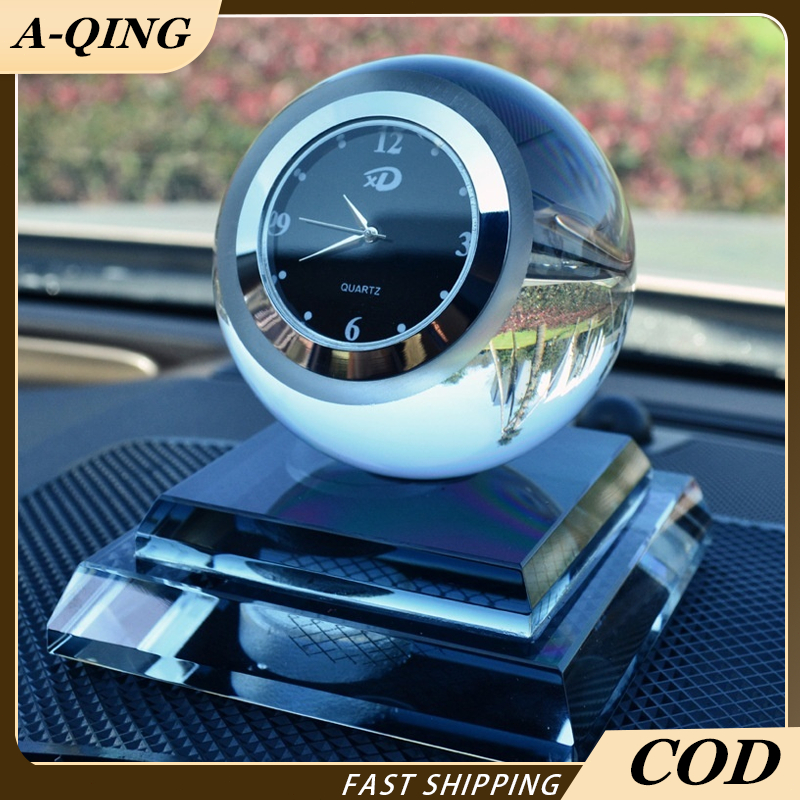 3 IN 1 Parfum Jam dan Pajangan Mobil Kristal Mewah/Jam Analog mobil interior dashboard Mobil dengan bola cristal