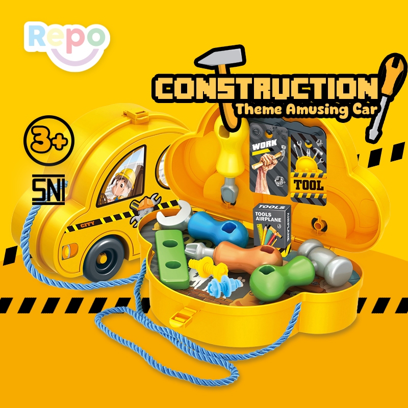 RE Mainan Anak Tas Selempang Backpack Set Car Peran Edukasi Motif Mobil