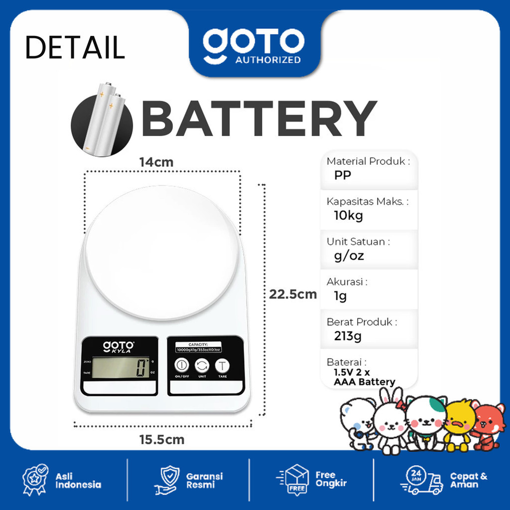 Goto Kyla Kitchen Scale Timbangan Bumbu Dapur Kue Digital Charge LED
