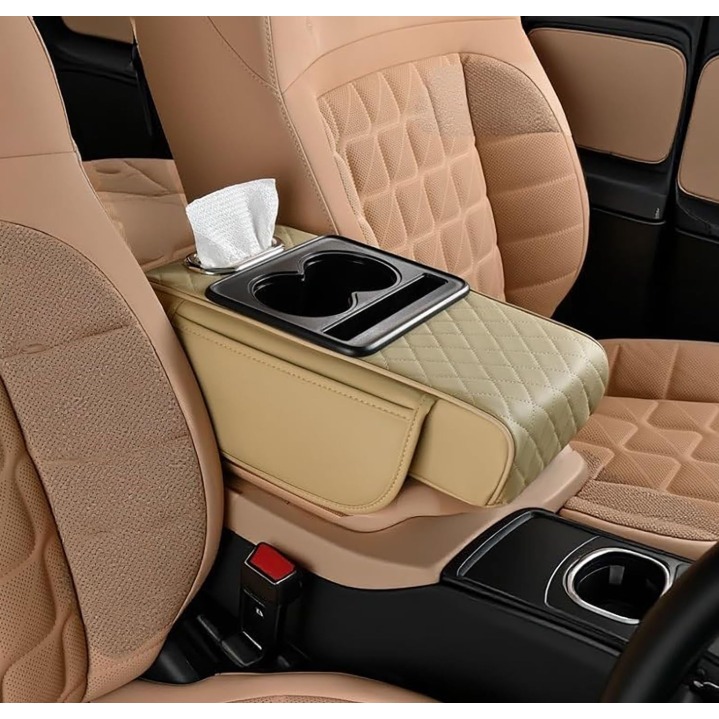 Armrest Pad Mobil Kotak Tisu Mobil , 4IN1 Premium Tisu & Cup Holder, Aksesoris Interior Mobil
