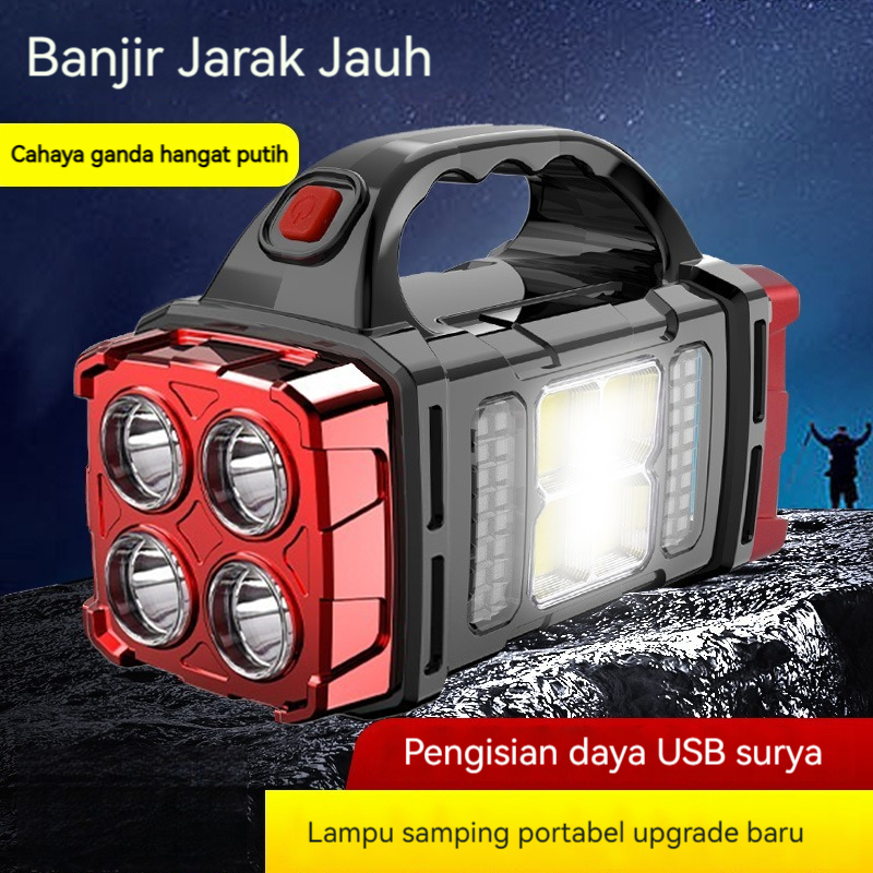 Senter Surya Super Terang Jarak Jauh Emergency USB Recharge Anti Air Punya Daya