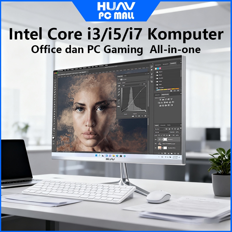 HUAV Komputer Full Set All-in-One PC Baru, Prosesor Core i3/i5/i7, RAM 16G, SSD 512G, Inci Pilihan, Untuk Rumah, Belajar, Kantor, gaming dan Hiburan, Konfigurasi tinggi,Gratis Mouse + Keyboard