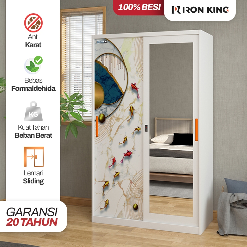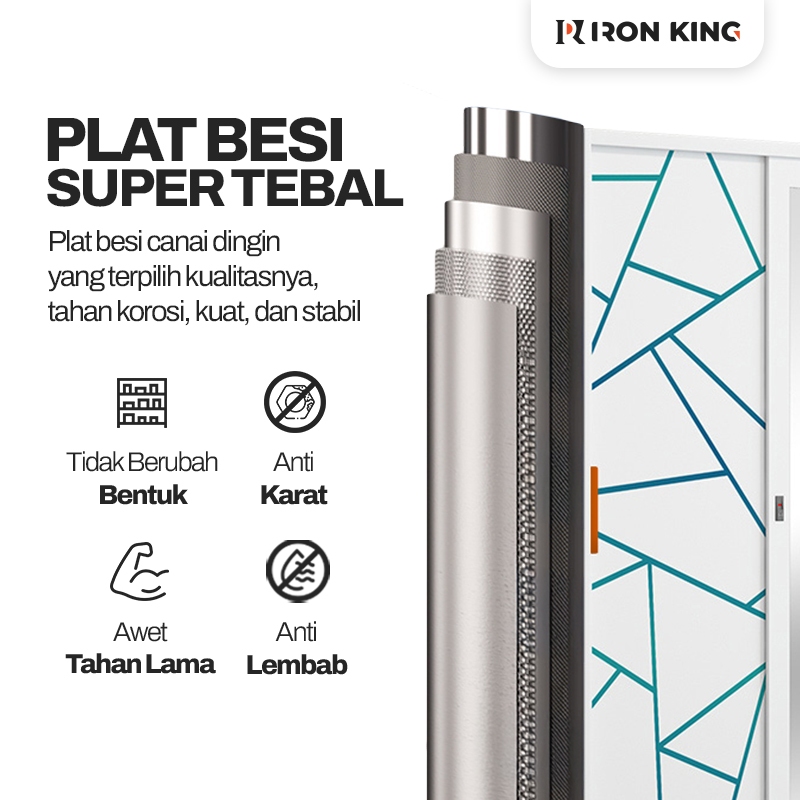 Iron King Lemari Pakaian Lemari Besi Sliding 2 Pintu Lemari Pakaian Minimalis Full Besi & Motif