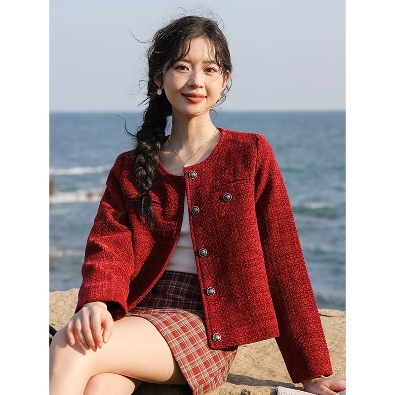 EMITA BLOOM french white tweed blazer batik wanita premium elegant office atasan er crop panjang lengan wanita kekinian korean style work crop formal jacket plus size