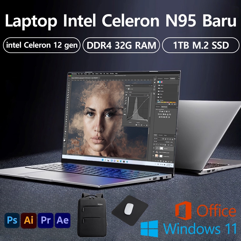 Kantor Laptop komputer 15,6 Inci/14.1 inch 2025, 12 gen Prosesor Quad-Core, RAM 32GB DDR4, SSD 1TB, Office Windows 11 Terinstal, 1 Tahun