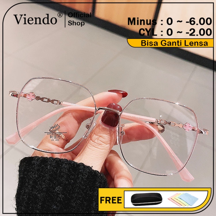 Viendo Kacamata Anti Radiasi Pocromic Minus/CYL Wanita Pria Cowok 2 in 1 Bluecromic tocromic Blueray Frame Kaca mata Fashion UV400 Komputer HP Anti Sinar matahari Kaca Mata Optik