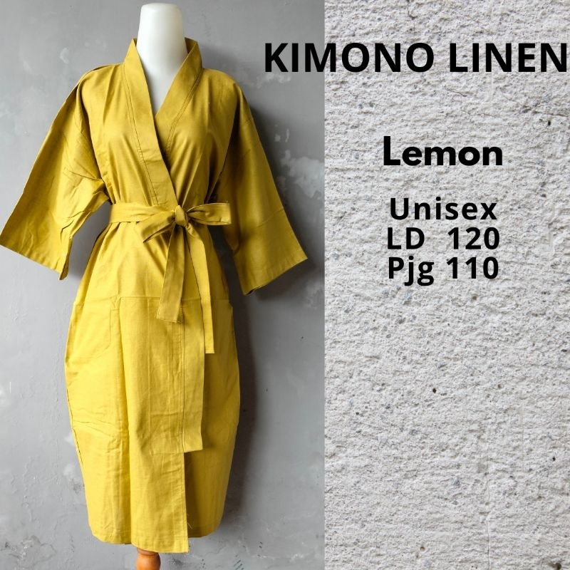 Kimono Linen Robe Baju Tidur Pria Wanita Premium