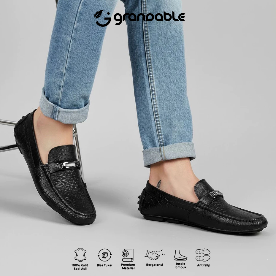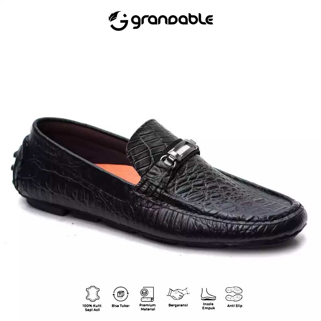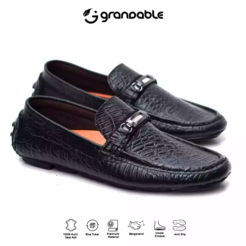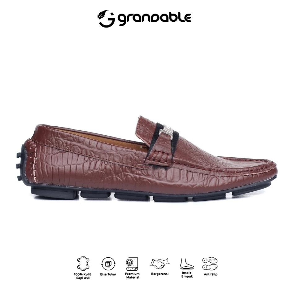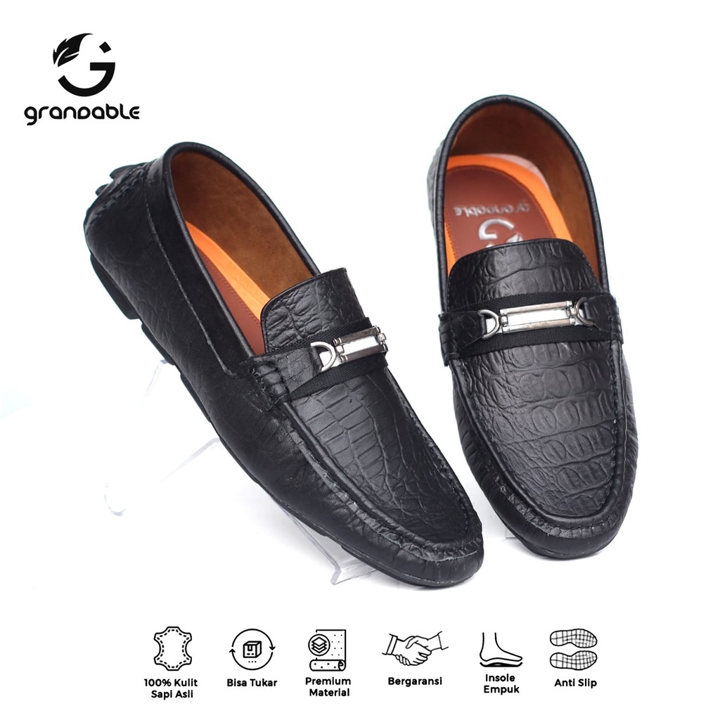 [Mall] Grandable Croco Sepatu Loafers Pria Casual Pantofel Kerja Kantor Kulit Hitam Tan Coklat