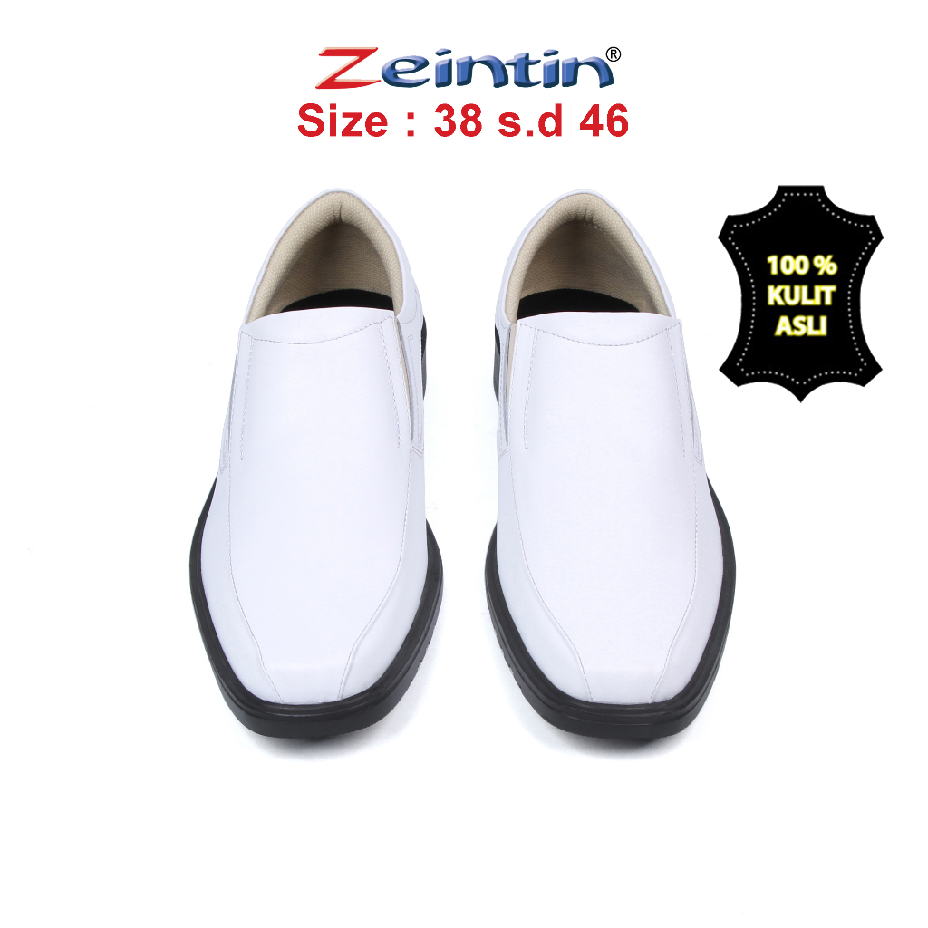 [Mall] Zeintin AJ Sepatu Pantofel Pria Putih Sepatu Perawat Kerja Dinas Bahan Kulit - White