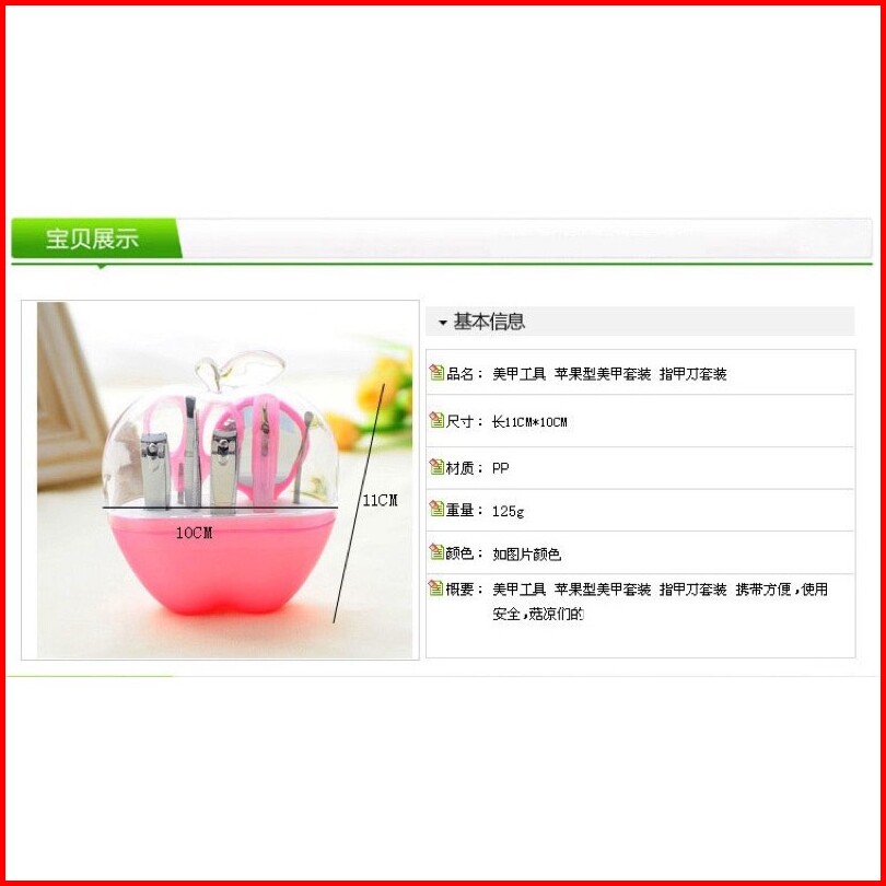 Alat Perlengkapan Nail Art Manikur Pedikur 1 Set Isi 9 Pc Bentuk Apel. Alat Gunting Kuku Isi 9 Jenis