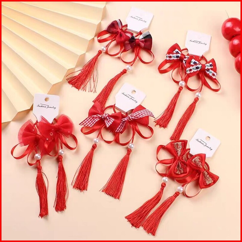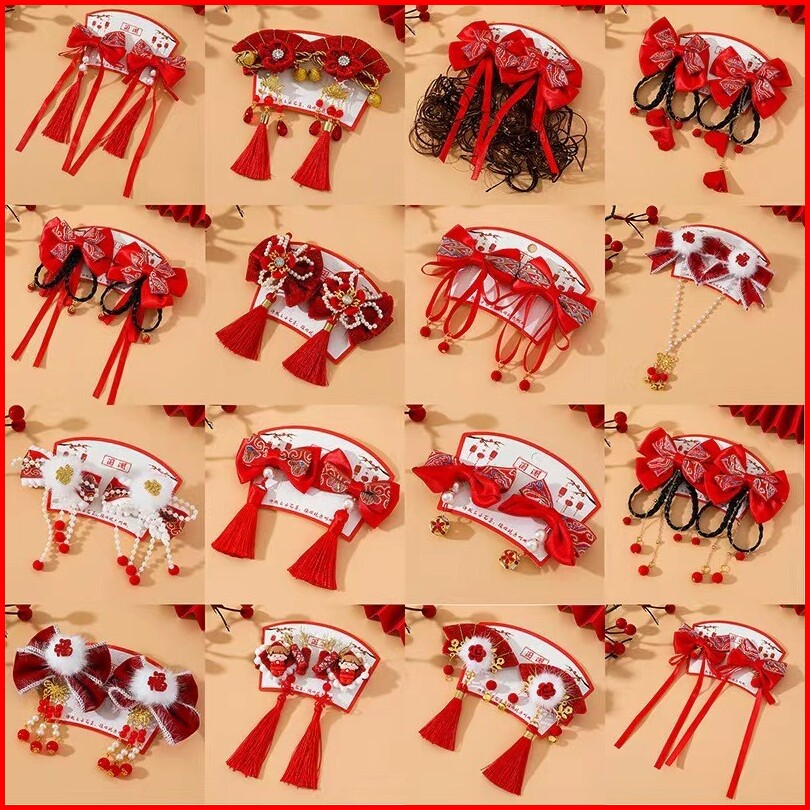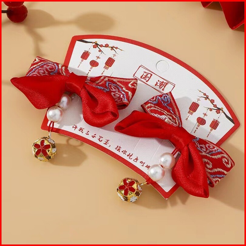 Hello Girl F341 Jepit Rambut Imlek Sepasang Jepit Rambut Pita Merah Import