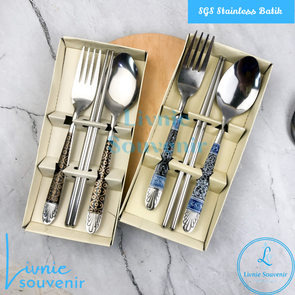 Souvenir SGS Sendok Garpu Sumpit Stainles BATIK Bok Jasmine Mika