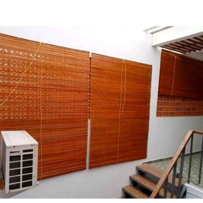 TIRAI BAMBU PLITUR & VERNIS 2X2 METER LENGKAP TALI PENGGULUNG DAN RING KEREKAN SEMUA UKURAN LEBAR KALI TINGGI