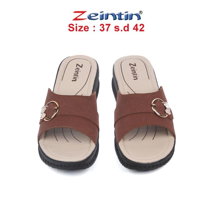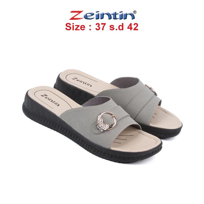 Zeintin - Sandal Wanita Sandal Selop Wedges Bahan Kulit Sintetis