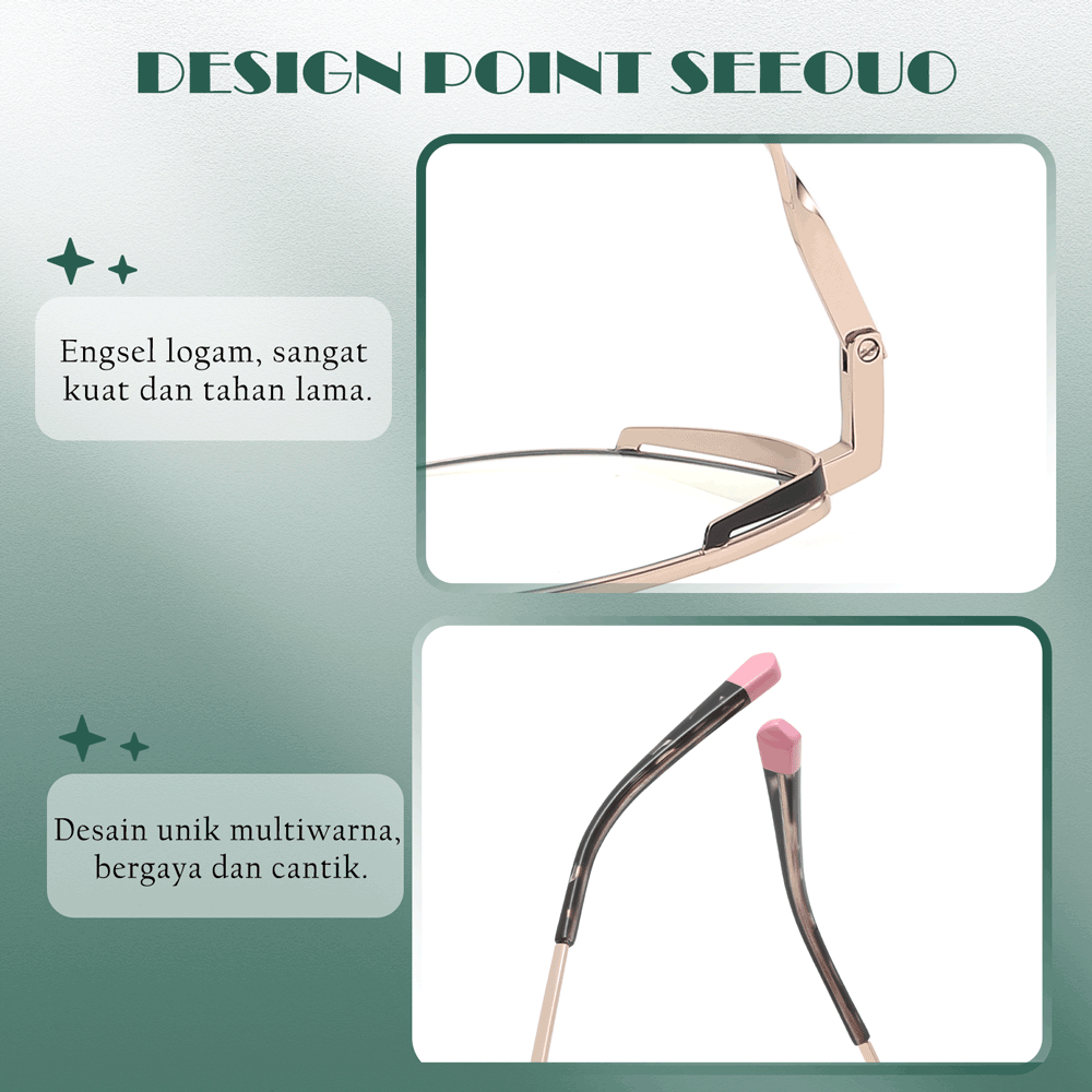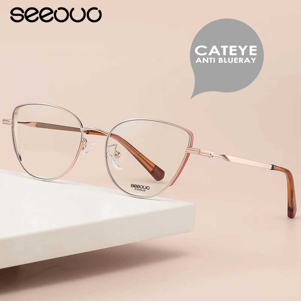 Seeouo - Kacamata Anti Radiasi Blueray Bentuk Cat Eye Bahan Metal + TR90 Wanita Minus Antiradiasi Blueray Pocromic 702 2013