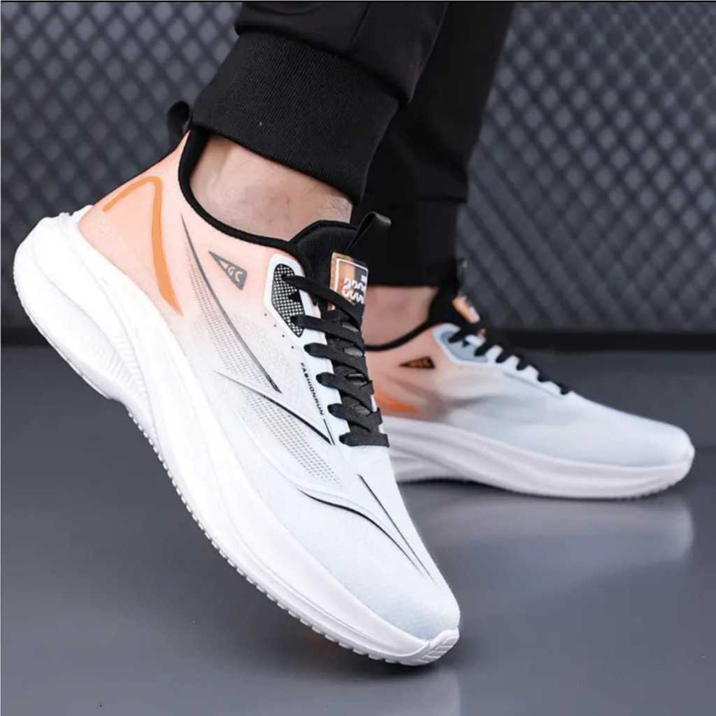 Sepatu Lari Pria RU-1 Breathable Fashion Sporty Hitam Orange