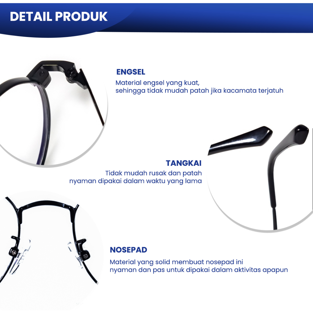 IOOI Kacamata Bulat Minus Pocromic Anti Blueray Frame Ringan Pria Wanita 2806