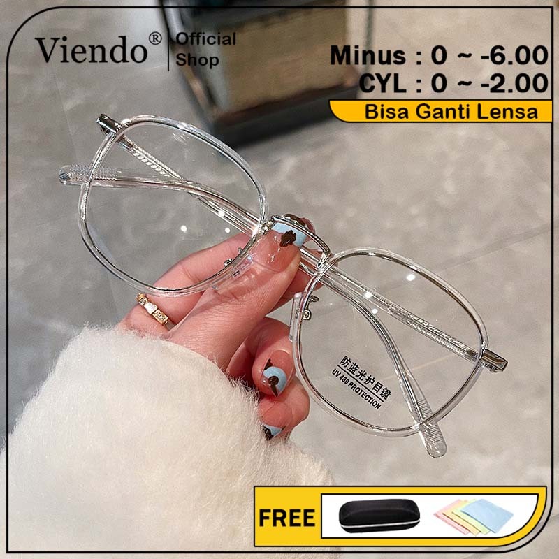 Viendo Kacamata Minus Pocromic Anti Radiasi Blueray Wanita Pria Cowok Korea Fashion Oval Besi Frame 2 in 1 Bluecromic tocromic Fotocromic Kecamata Antiradiasi Sinar Matahari UV400 Kaca Mata Optik