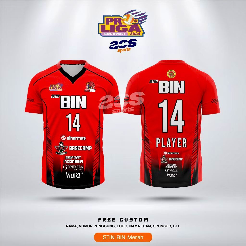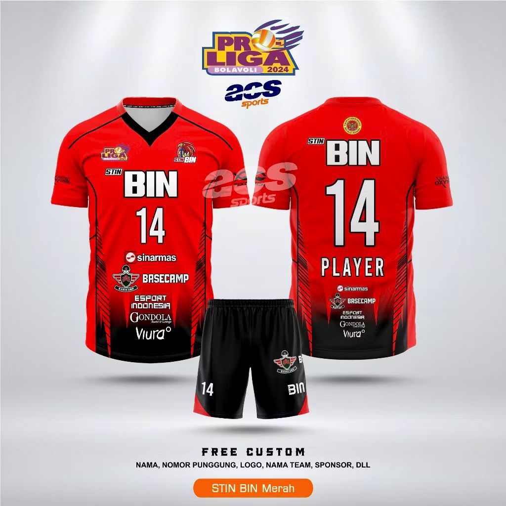 JERSEY VOLLY STIN BIN - FREE COSTUM NAMA, NO PUNGGUNG DAN LOGO - FULL PRINTING SUBLIMATION